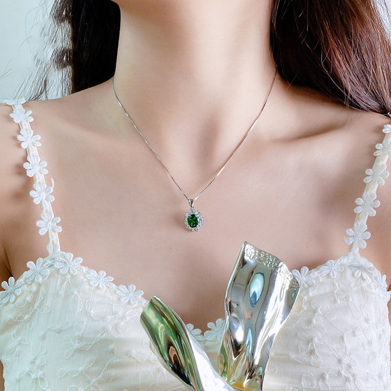 Sterling Silver Super Flash Colored Diamond Collarbone Necklace