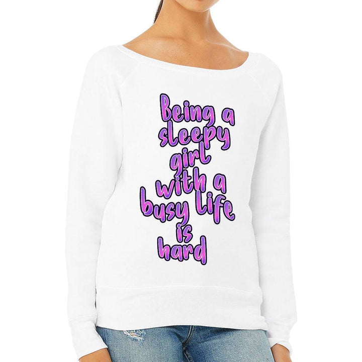 Being a Sleepy Girl Wide Neck Sweatshirt - Cool Design Women's Sweatshirt - Best Print Sweatshirt