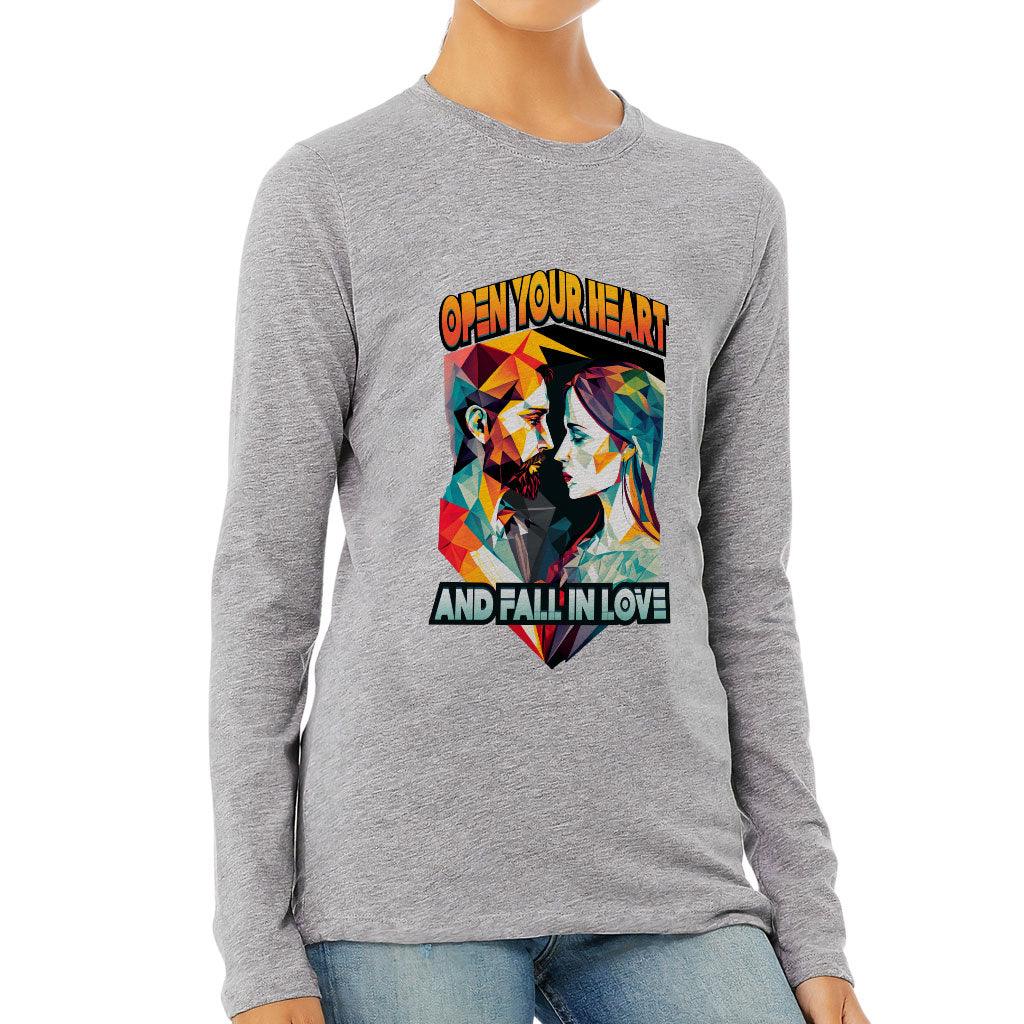 Fall in Love Women's Long Sleeve T-Shirt - Unique Long Sleeve Tee - Geometric T-Shirt