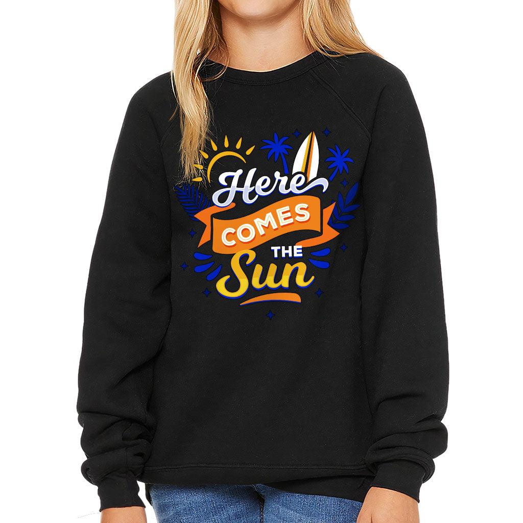 Here Comes the Sun Kids' Raglan Sweatshirt - Cute Sponge Fleece Sweatshirt - Themed Sweatshirt