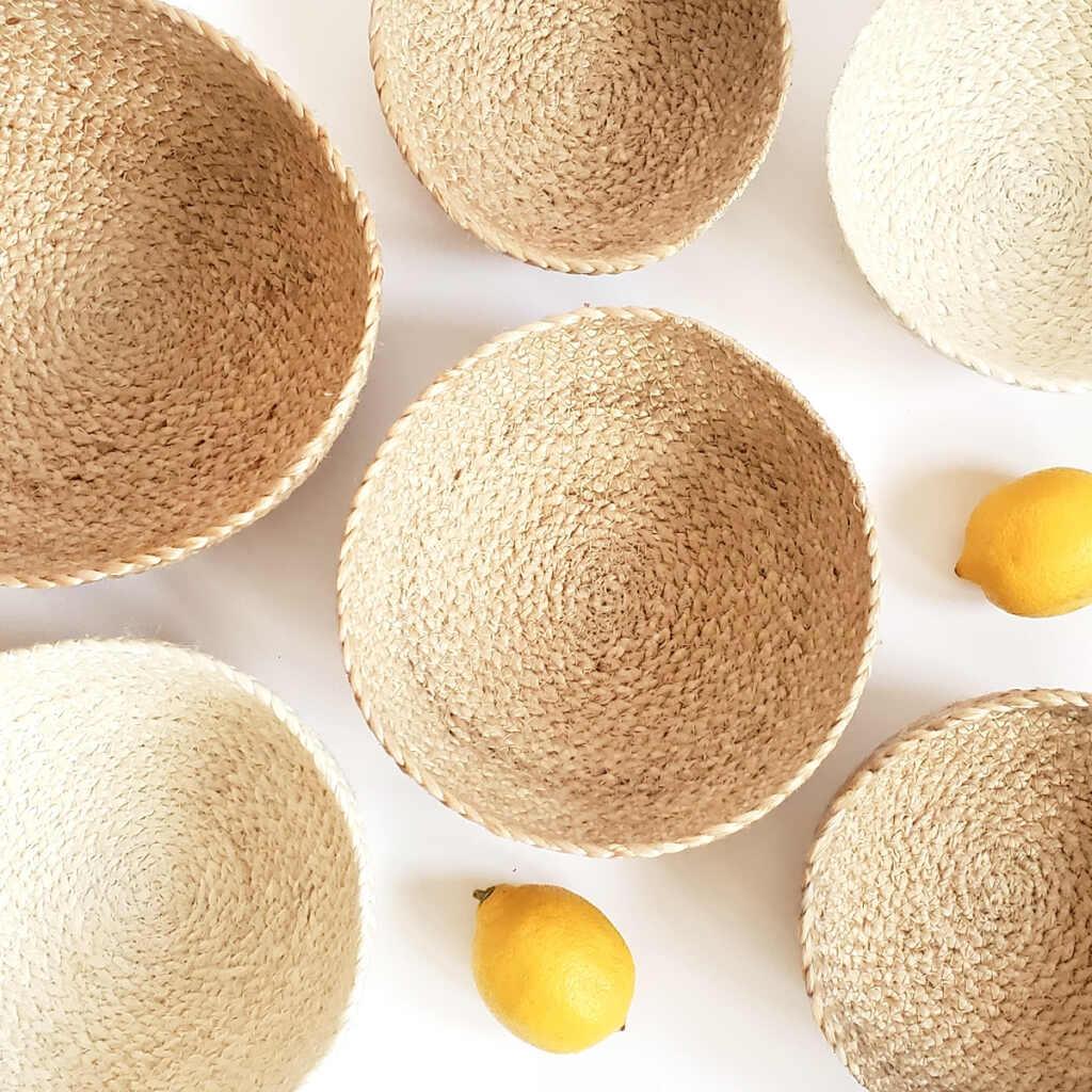 The bowls are made with 100% natural raw jute and natural dye. This charming homeware boasts the refined skills of our fair trade artisans, which have been acquired through many generations.