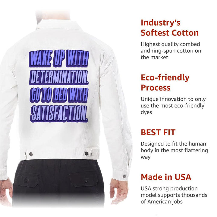 Wake Up With Determination Men's White Denim Jacket - Best Design Denim Jacket for Men - Printed Denim Jacket