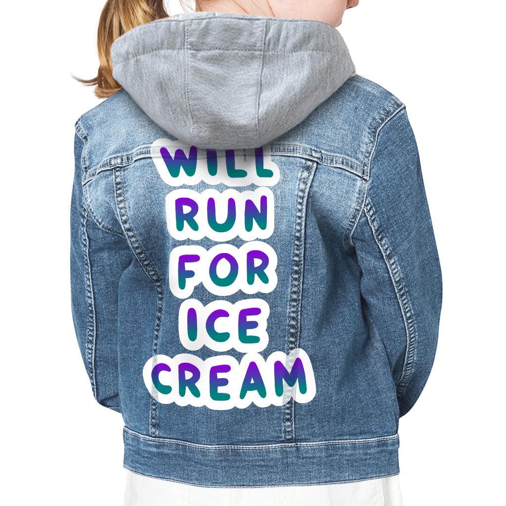 Will Run for Ice Cream Hooded Denim Jacket for Kids - Funny Jean Jacket - Cool Denim Jacket for Kids