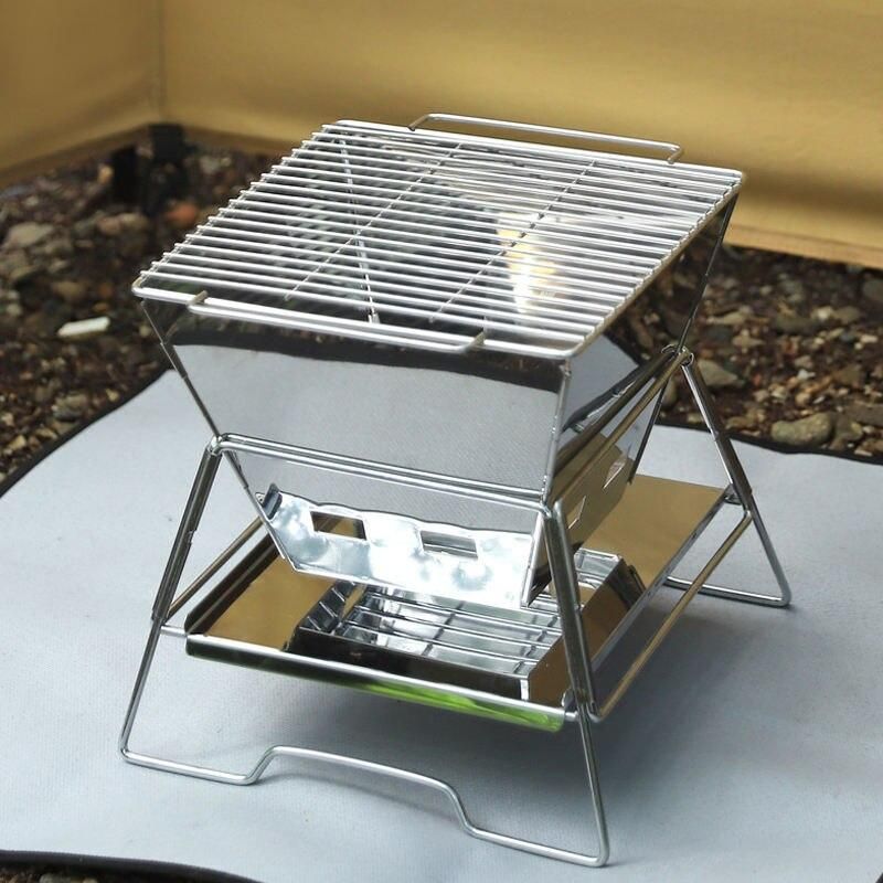 Compact Stainless Steel Portable Folding BBQ & Grill - Ideal for Camping and Outdoor Cooking