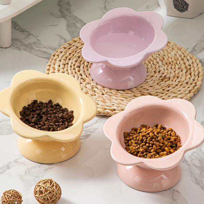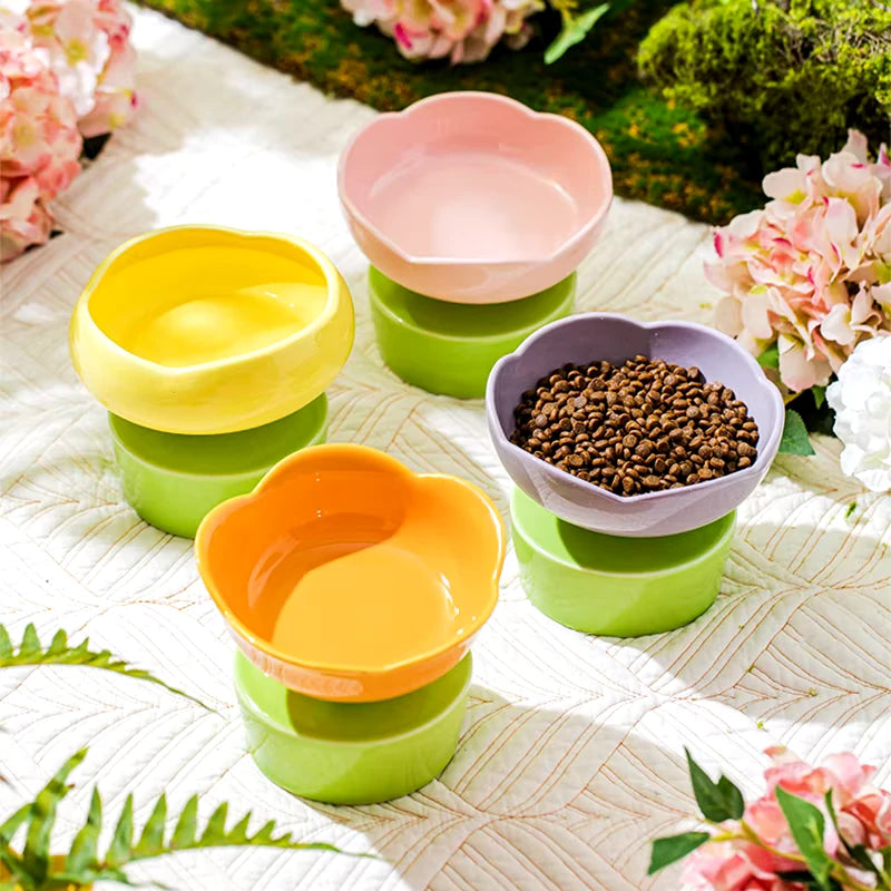 Flower-Shaped Ceramic Cat Food and Water Bowl
