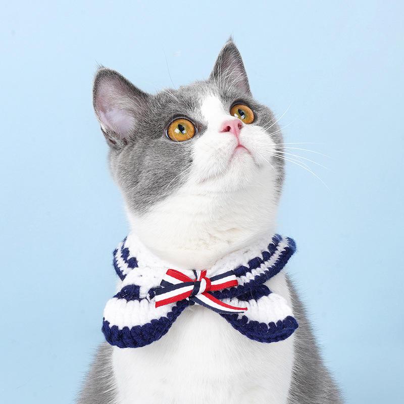 Dog Knitted Scarf with Fuzzy Pompom - Winter Neck Warmer Bandana for Pets