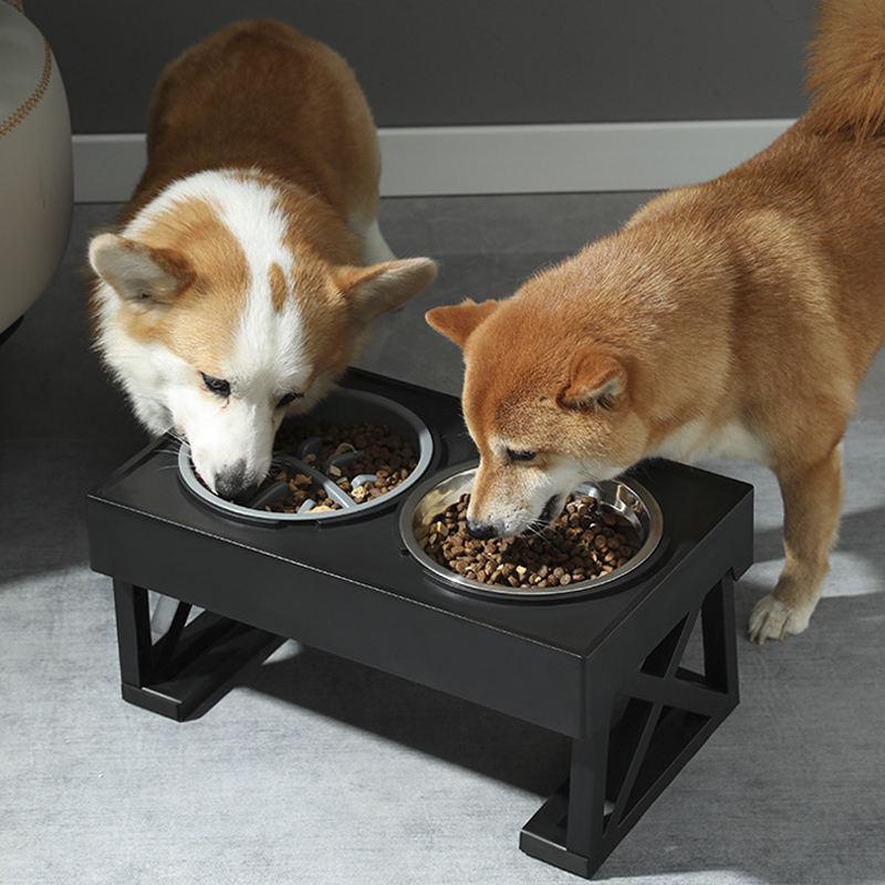 Adjustable Double Elevated Dog Bowls with Slow Feeder and Non-Slip Stand