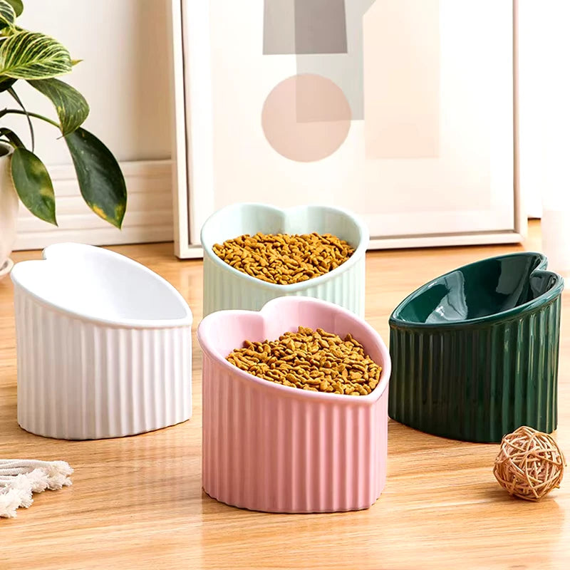 Ceramic Tilted Elevated Heart-Shaped Cat Bowl