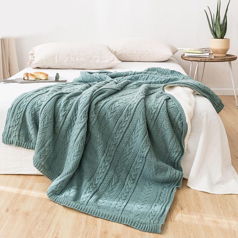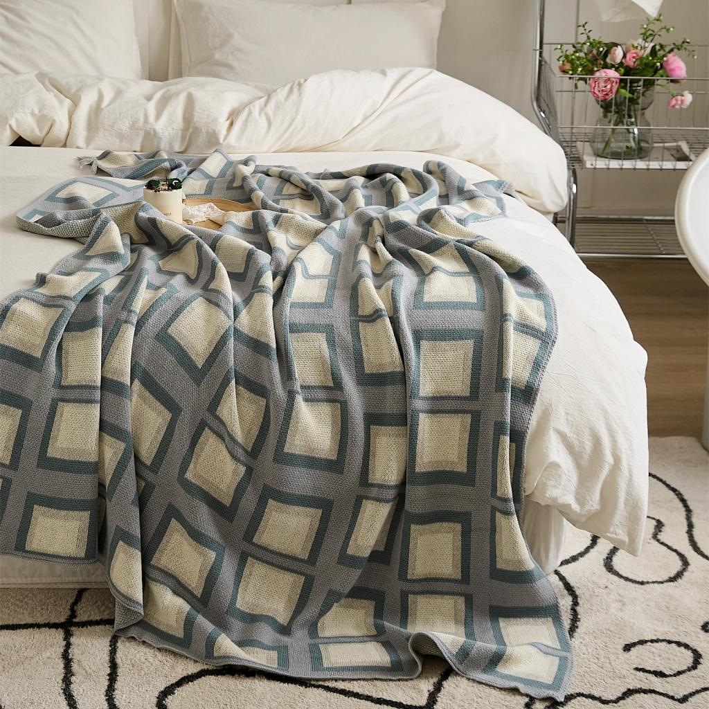 3D Cube Cotton Knitted Plaid Blanket - Delicate Nordic Bedspread