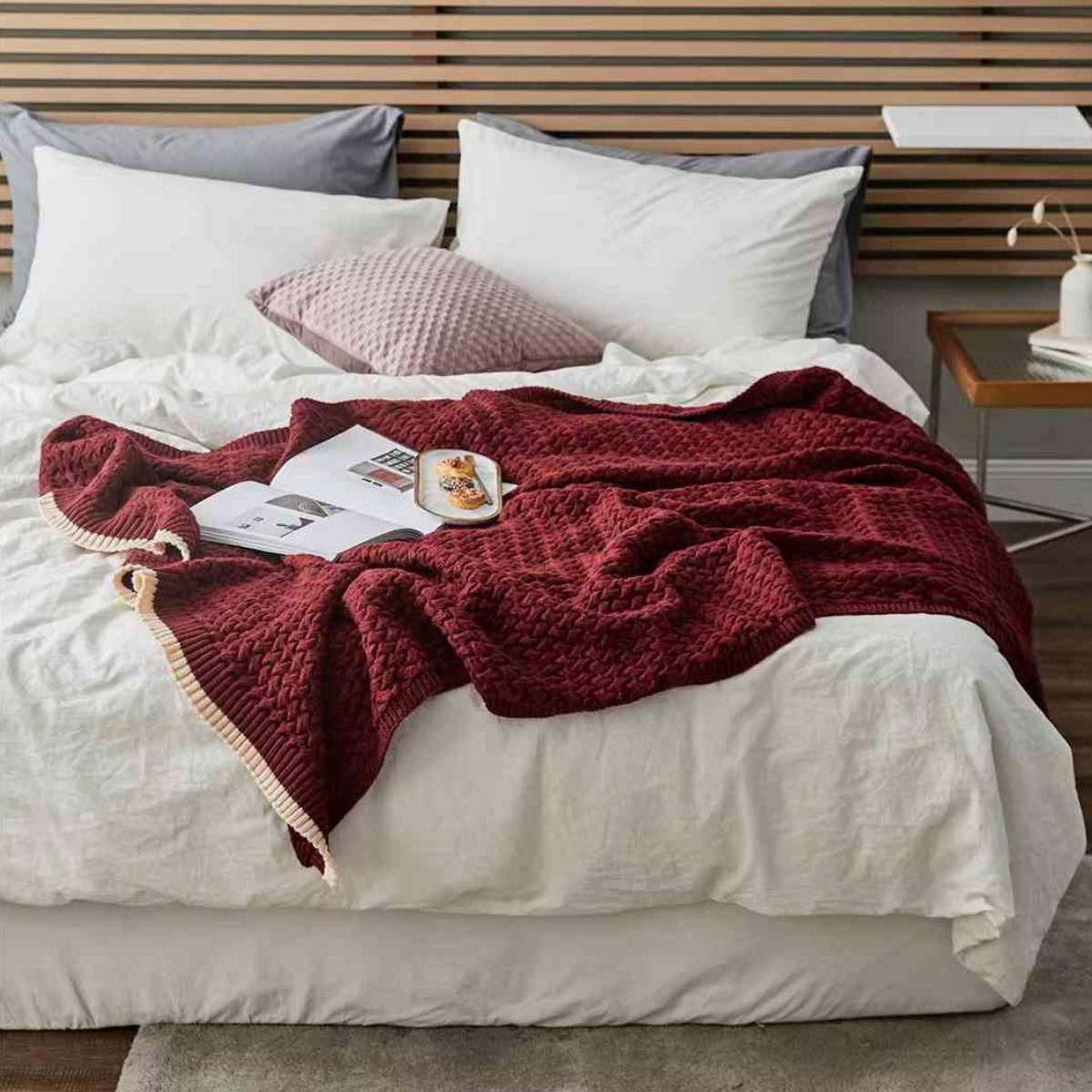 Cozy Oversize Moss Stitch Knitted Blanket for Bed and Sofa