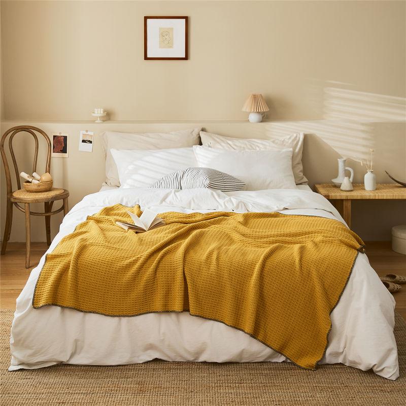 Boho Geometric Pattern Cotton Knitted Blanket – Summer Thin Breathable Comforter