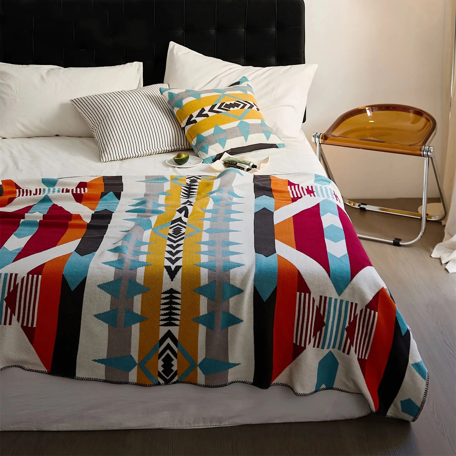 Bohemian Geometric Pattern Blanket with Luxurious Fringes