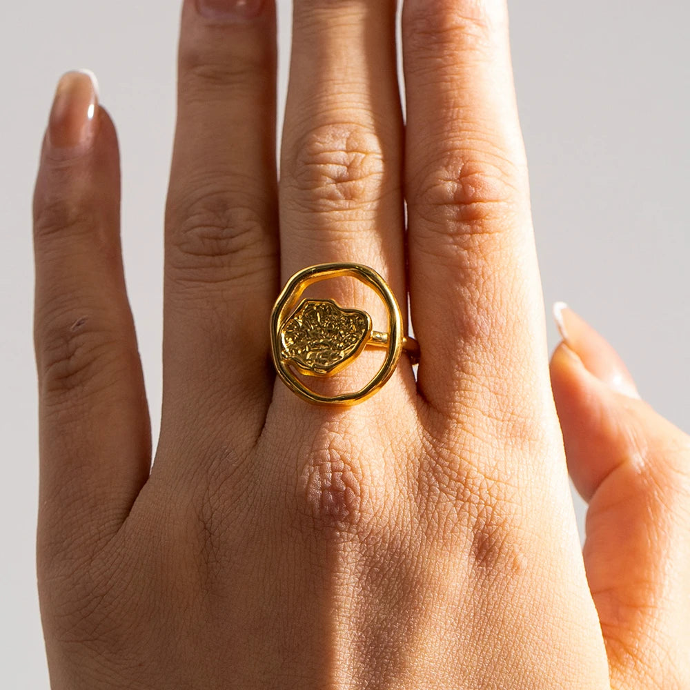 Rustic Gold Stainless Steel Open Ring Statement Jewelry