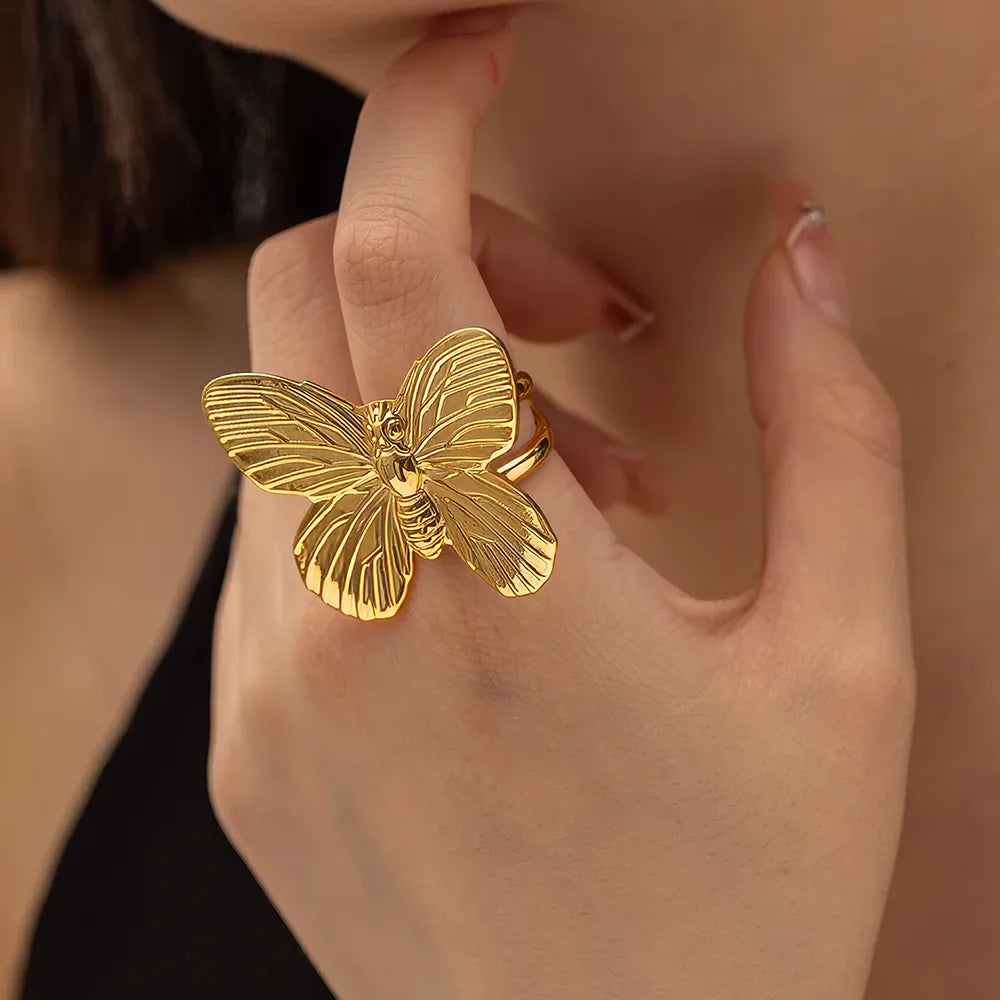 18K Gold-Plated Stainless Steel Butterfly Ring - Elegant Chunky Earrings for Special Occasions