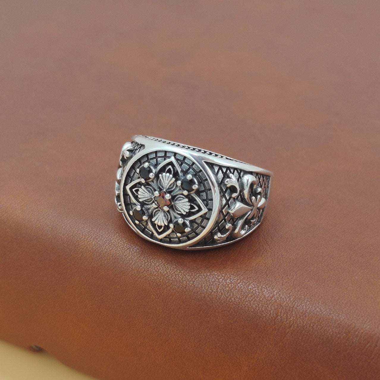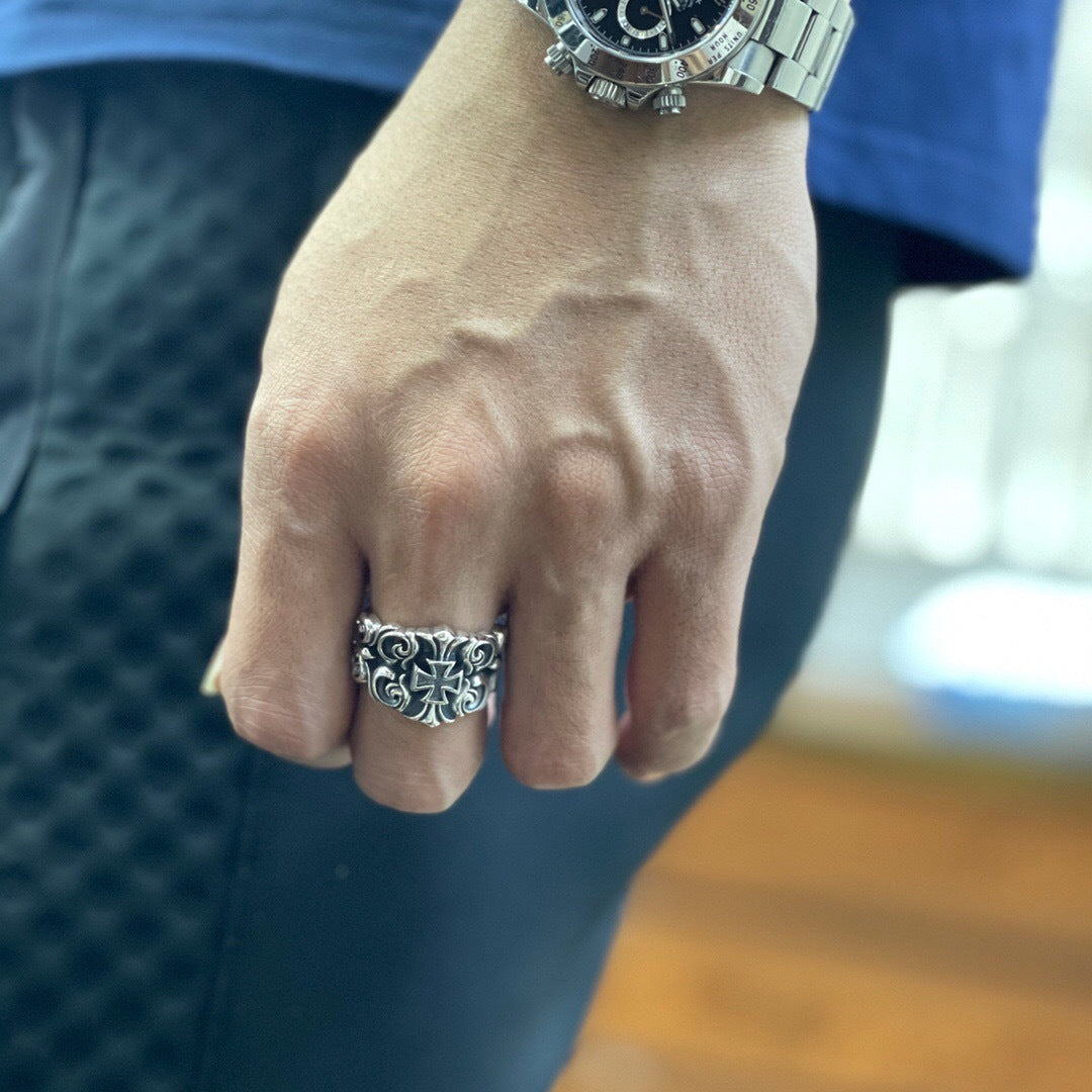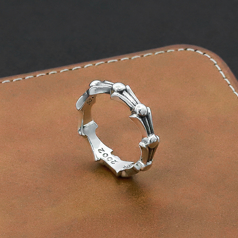 Silver Fashion Street Big Ring Mouth Personality Rattan Flower Men's