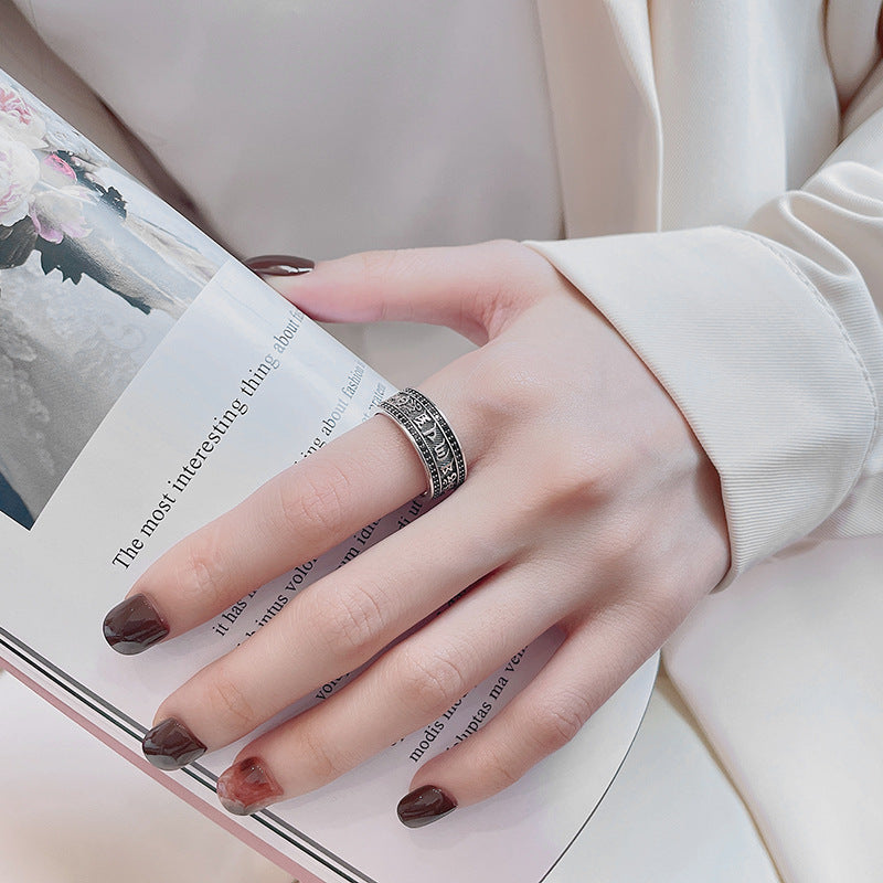 Men's And Women's Fashion Sterling Silver Vintage Six-character Heart Sutra Ring