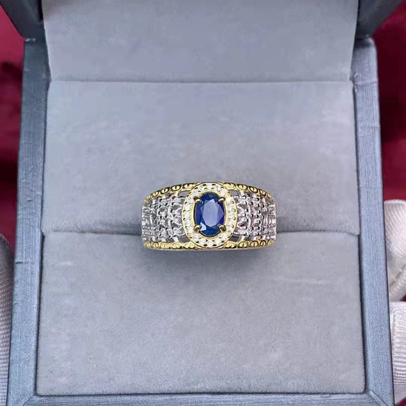 Sterling Silver Lava Texture Blue Open-end Zircon Ring