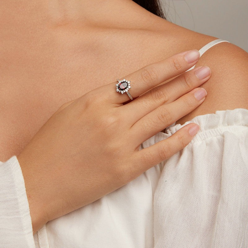 S925 Sterling Silver Irregular Red Open-end Zircon Ring