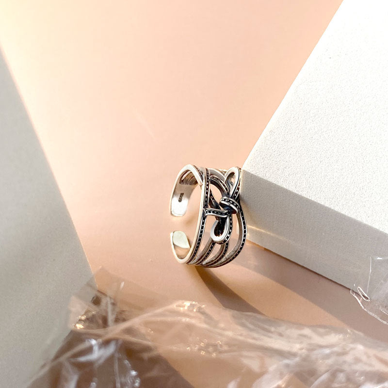 Vintage Minimalist Design S925 Sterling Silver Bends And Hitches Ring