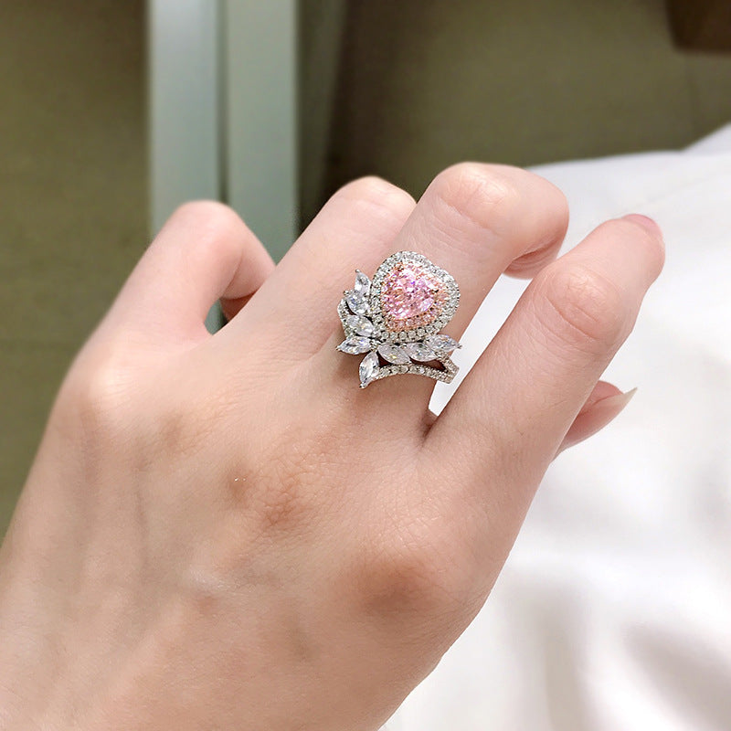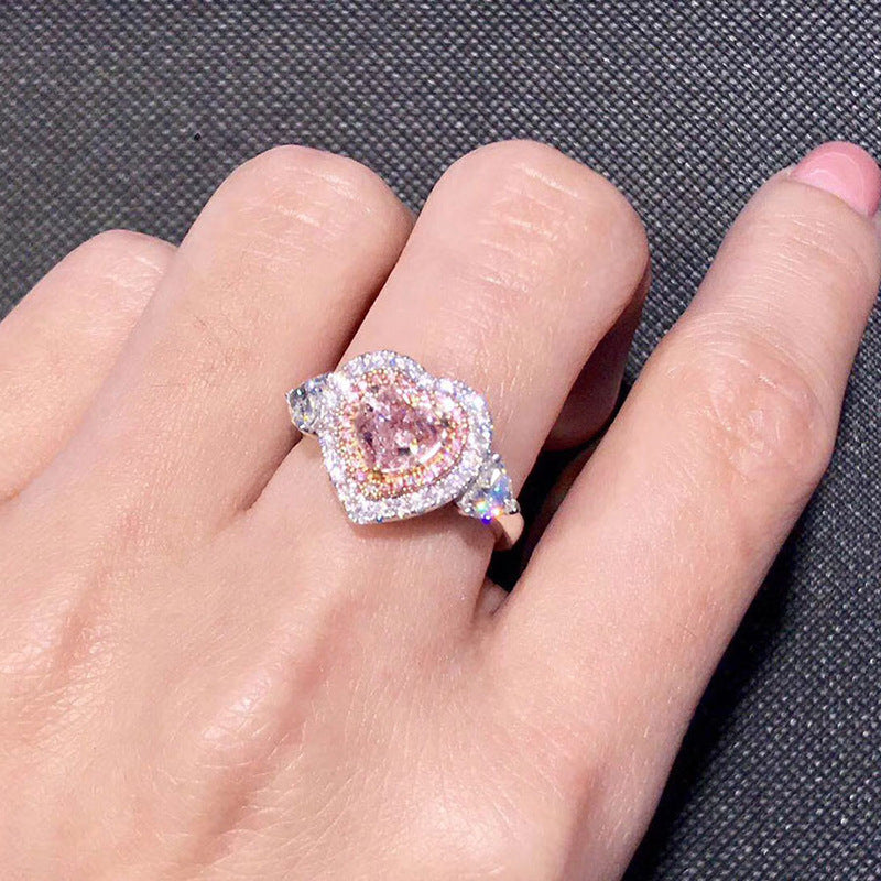 Women's Fashion Temperament Heart-shaped High Carbon Diamond Ring