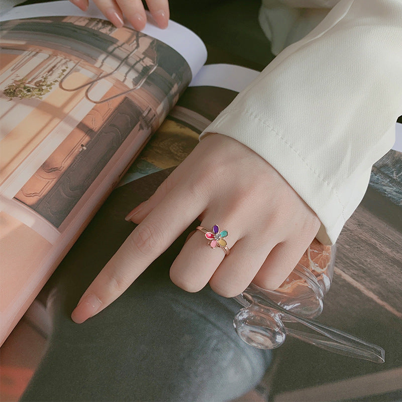 Women's S925 Sterling Silver Five Petal Flower Ring