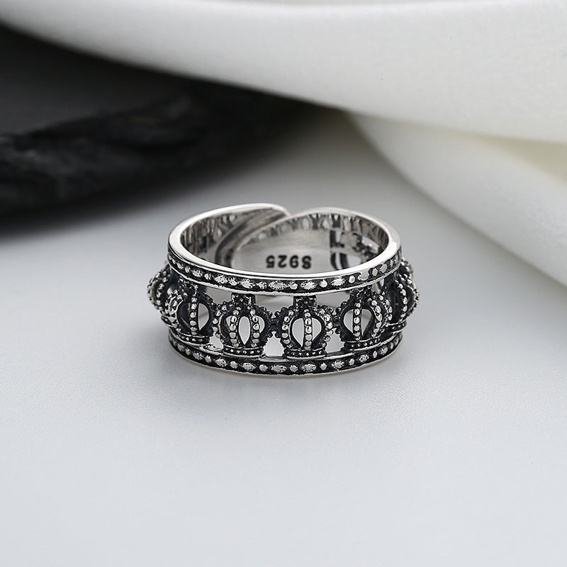 S925 Sterling Silver Wide Hollow Three-dimensional Crown Ring