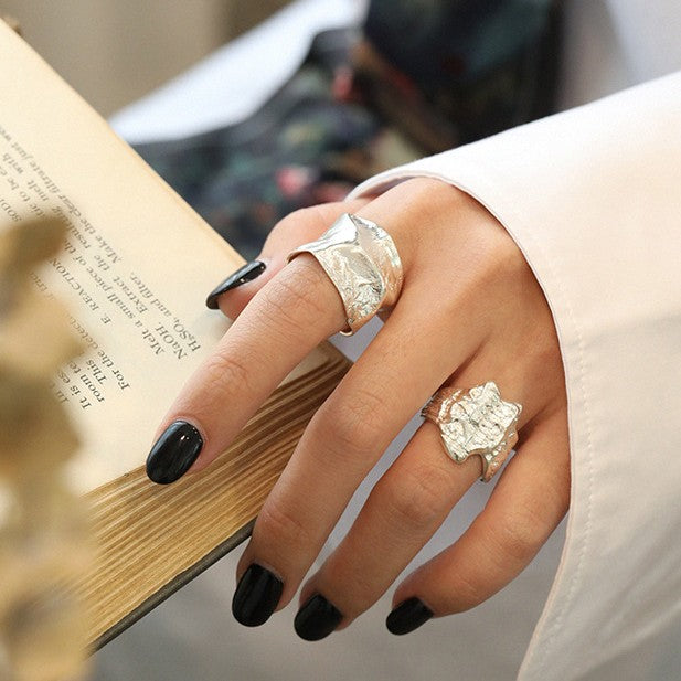 297 Korean Style S925 Sterling Silver Ring Ins Niche Irregular Concave Texture Open Ring