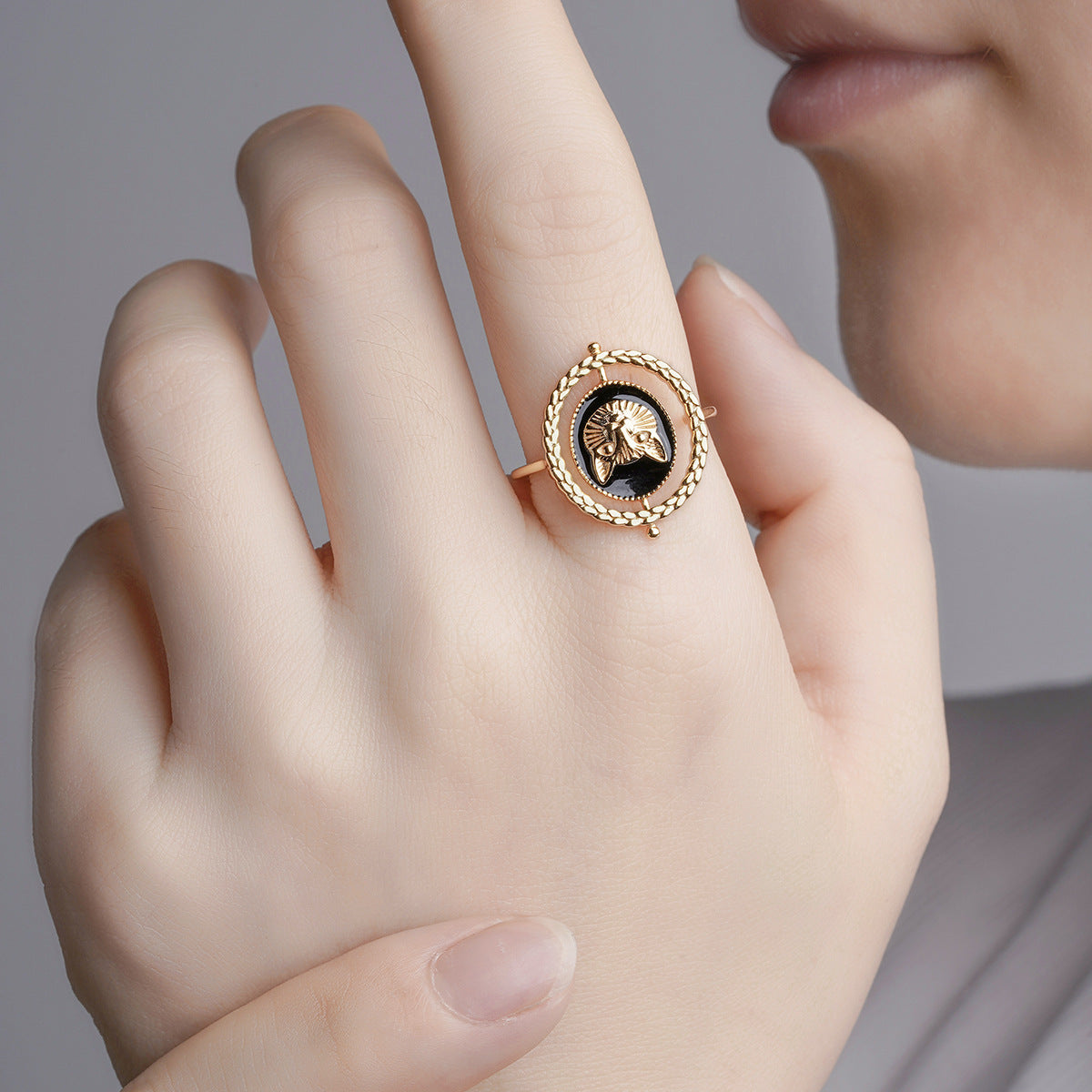 S925 Silver Gold-plated Precision Carving Natural Gold Grape Stone Ring