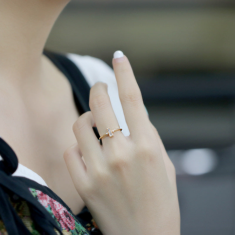 S925 Sterling Silver Simple Cross Set Zircon Ring
