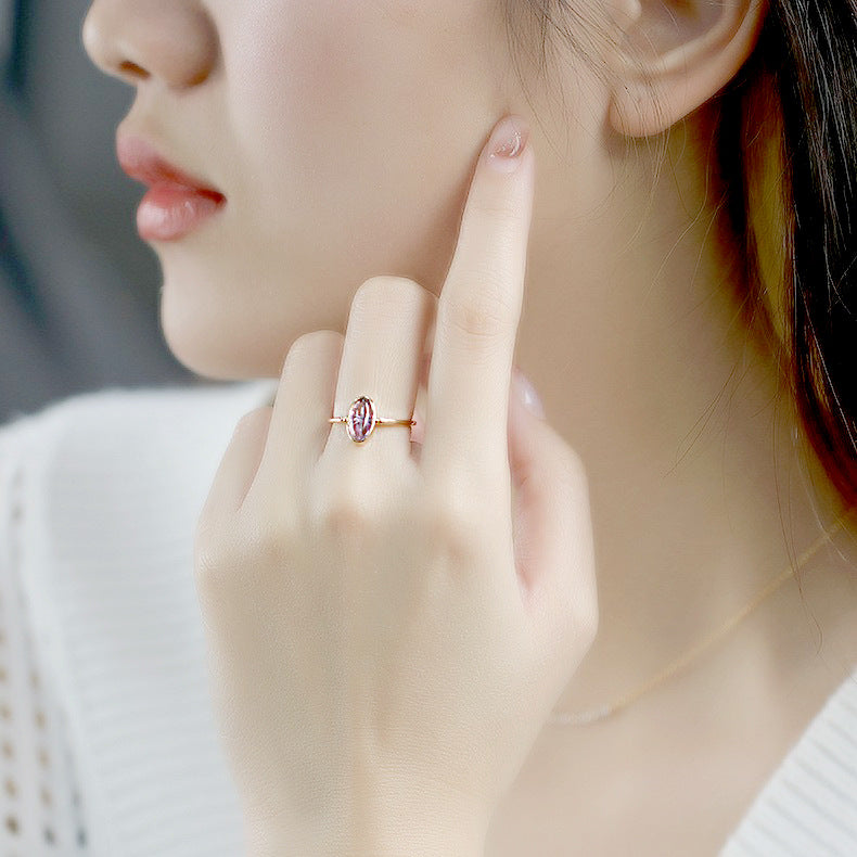 Simple And Versatile Rectangular Natural Crystal Folding Ring