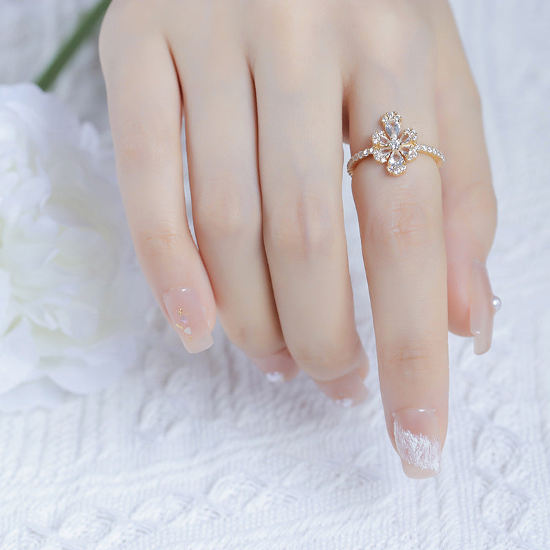 Rose Shaped Exquisite Sterling Silver Gold-plated Female Ring