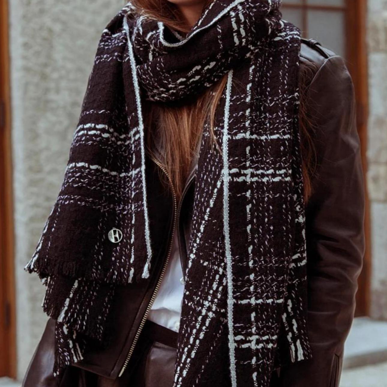 Elegant Checkered Cashmere Shawl Scarf - Thick & Warm Wrap