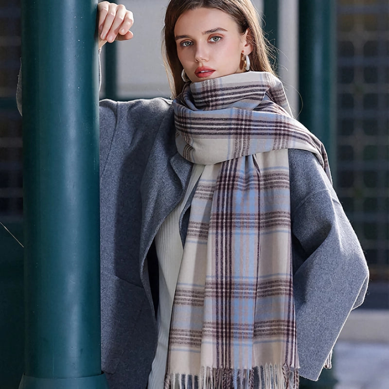 Elegant Plaid Cashmere Shawl - Long Warm Tassel Wrap