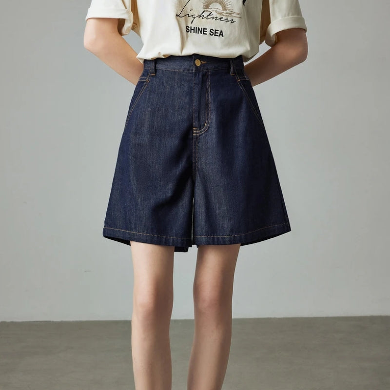 Summer Floral Embroidery High Waist Wide Leg Denim Shorts