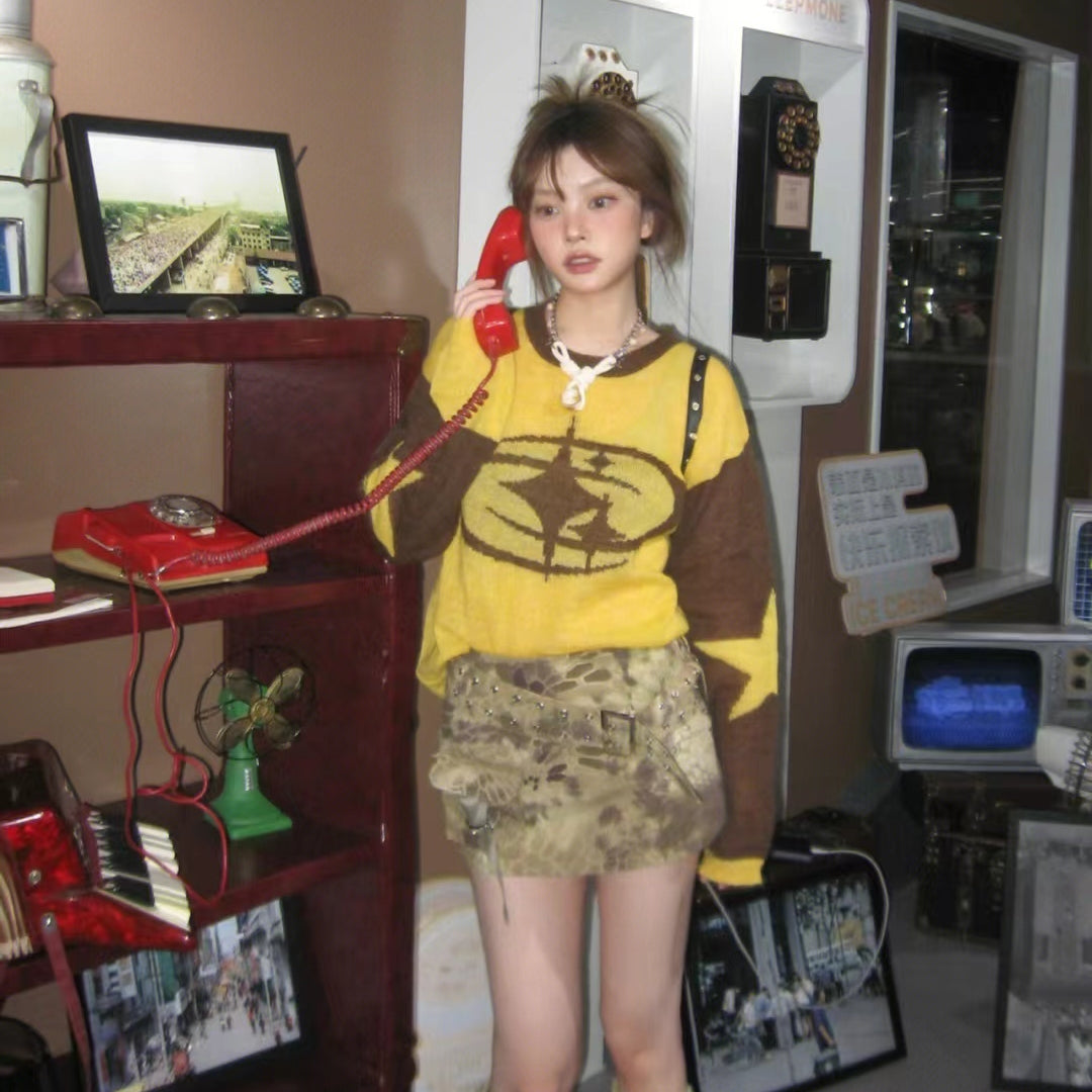 Women's American-style Retro Five-pointed Star Loose Long-sleeved Sweater