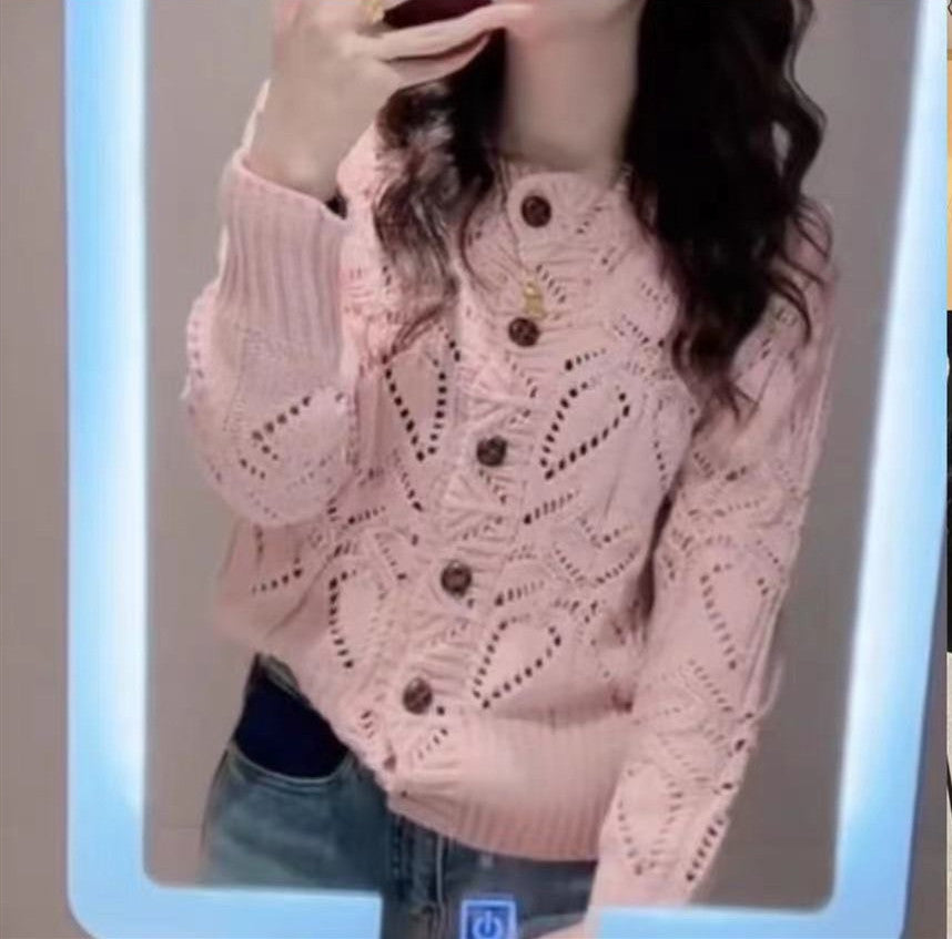 Women's Solid Color Hollow-out Knitted Cardigan Loose Sweater Coat
