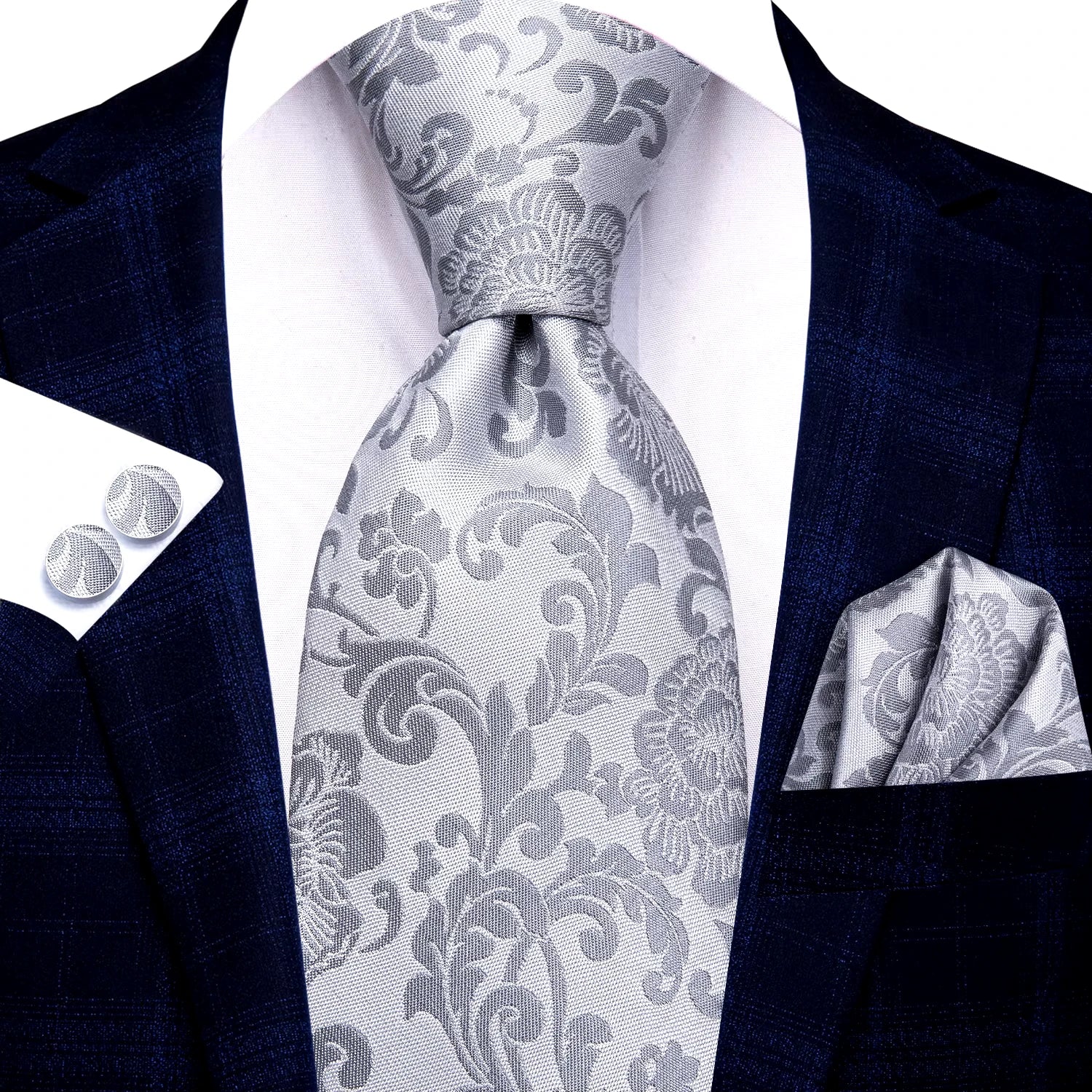 Elegant Silver Grey Floral Men's Necktie Set