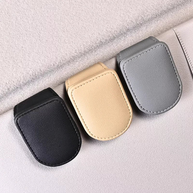 Luxury Cowhide Leather Sunglasses Case for Car Visor