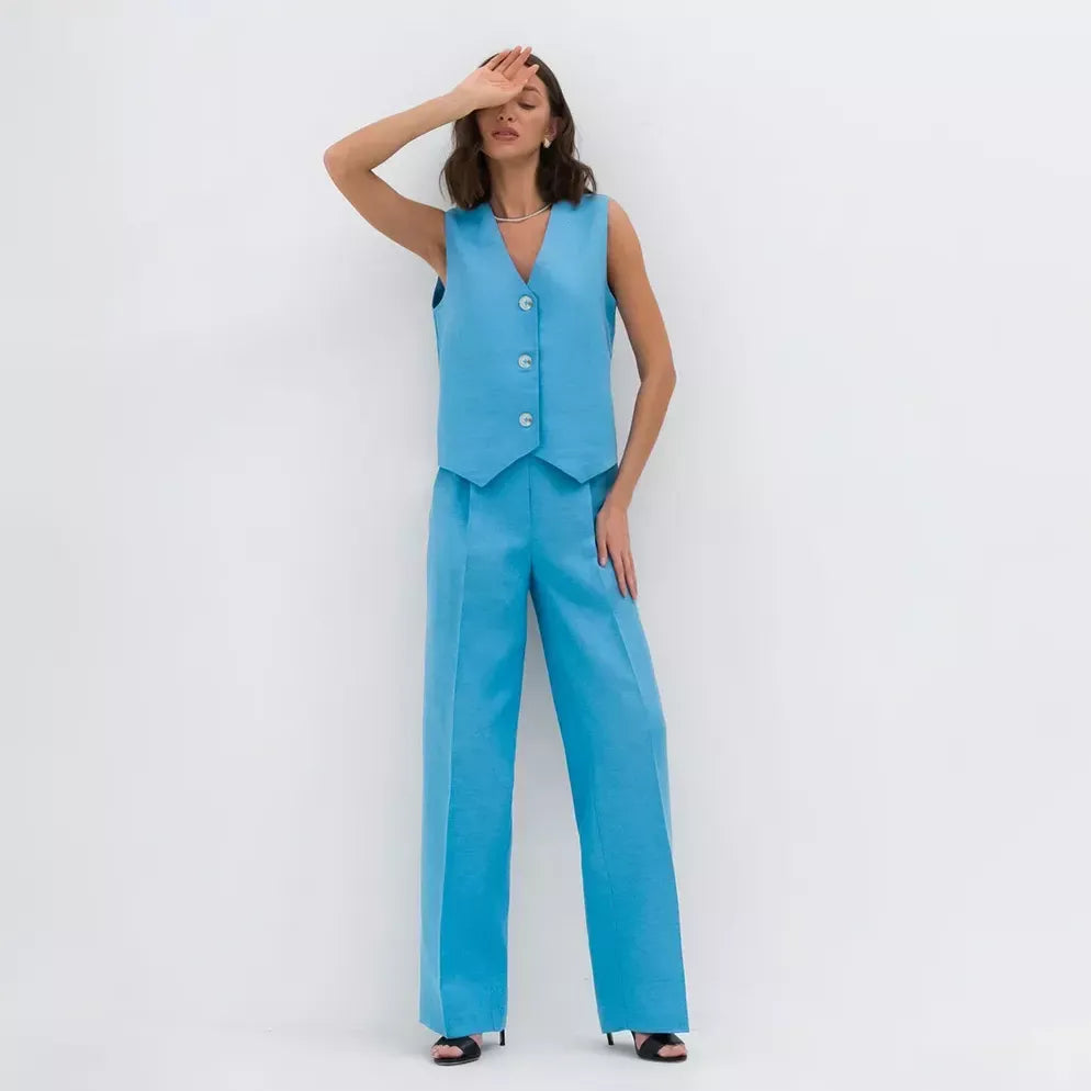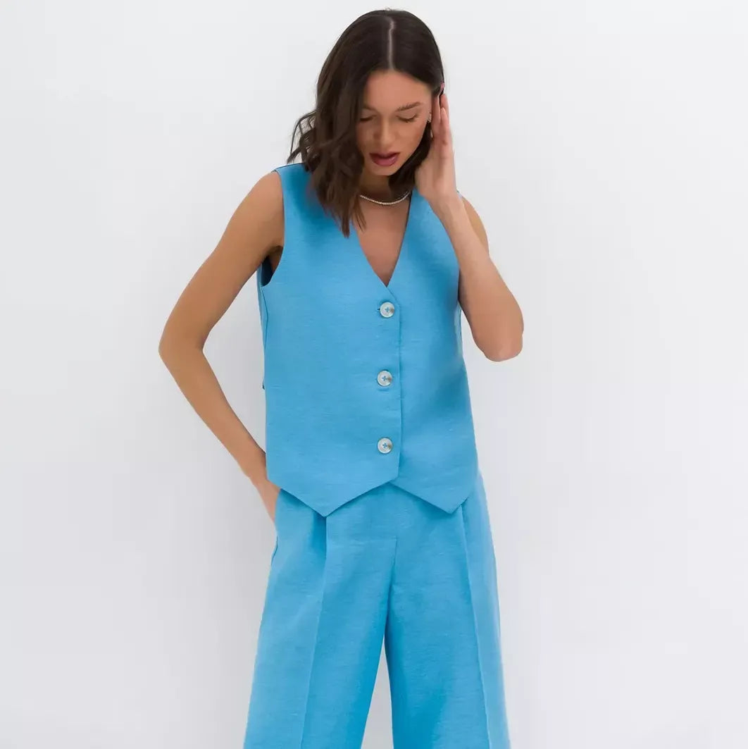 Embrace elegance and comfort with our Chic Cotton-Linen Blend Sleeveless Vest and Wide-Leg Pants Set. Tailored for the contemporary woman who values style as much as comfort, this ensemble is your ticket to sophisticated simplicity. Ideal for various occasions, from a laid-back brunch to a professional setting, this two-piece set is your go-to for making an impression while staying utterly at ease.