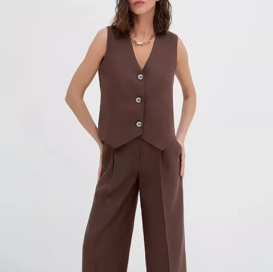 Step into a world where fashion meets functionality with our Chic Cotton-Linen Blend Sleeveless Vest and Wide-Leg Pants Set. It's more than an outfit; it's a lifestyle choice. Elevate your wardrobe now and embrace a look that's as individual as you are.