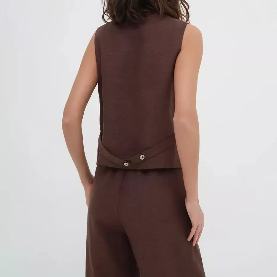 Cotton-Linen Blend Sleeveless Vest & Wide-Leg Pants Set