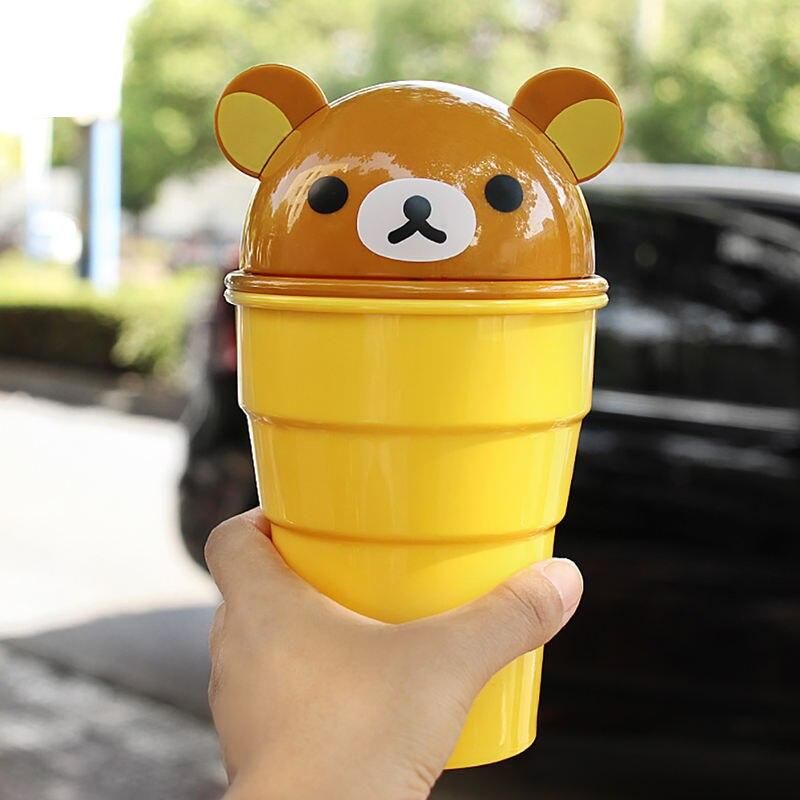 Cute Cartoon Bear Car Trash Can with Rolling Cover