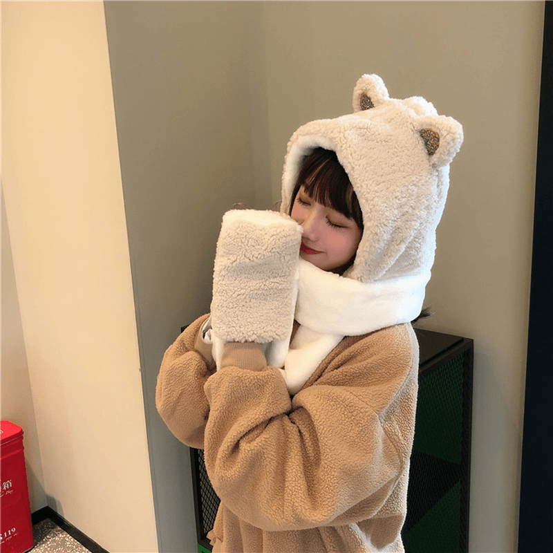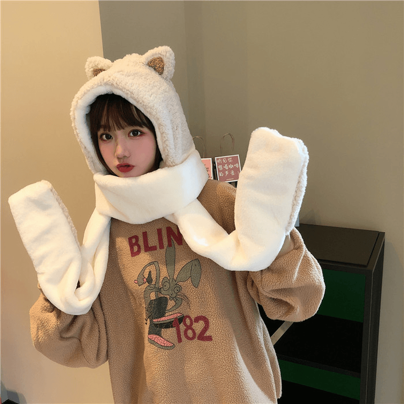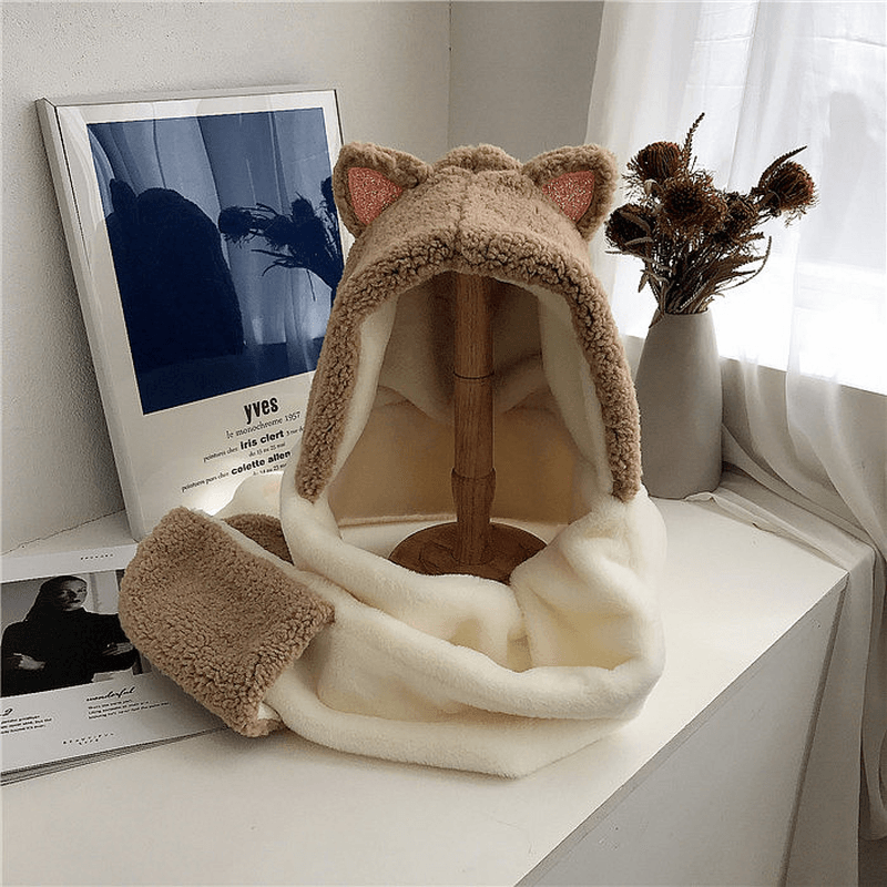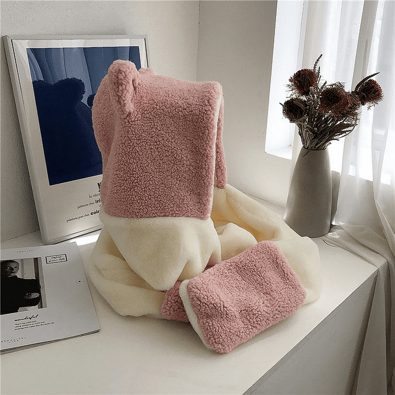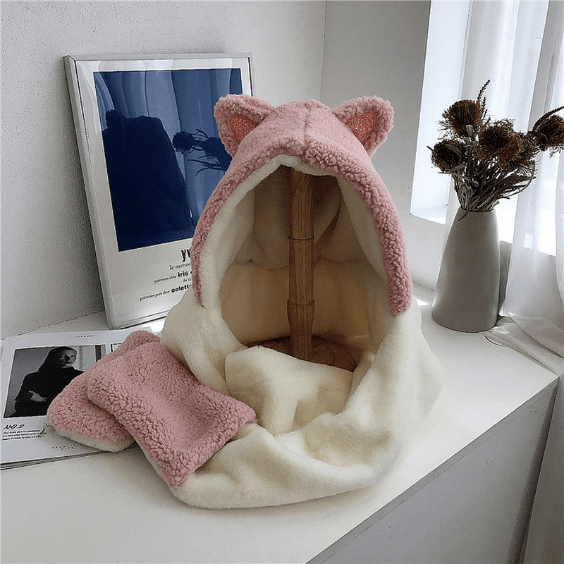 Cute Cat Ears Color Matching Plush Hooded Scarf