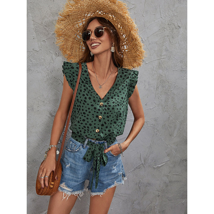 European And American V-neck Slim-fit Slimming Green Top