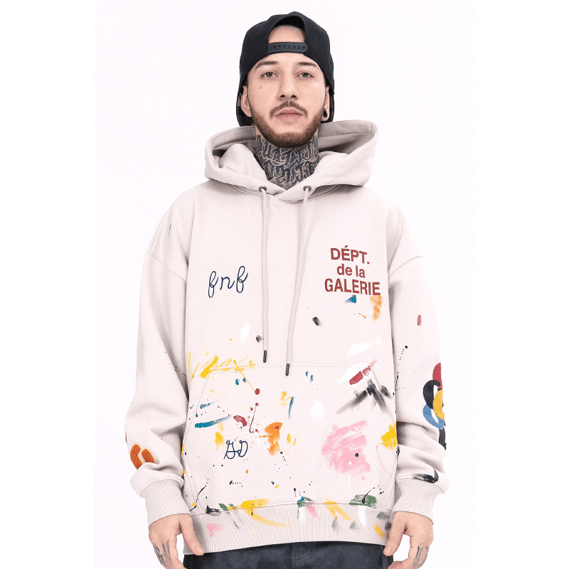 Graffiti Splash Ink Hip Hop High Street Distressed Retro Hoodie for Men and Women