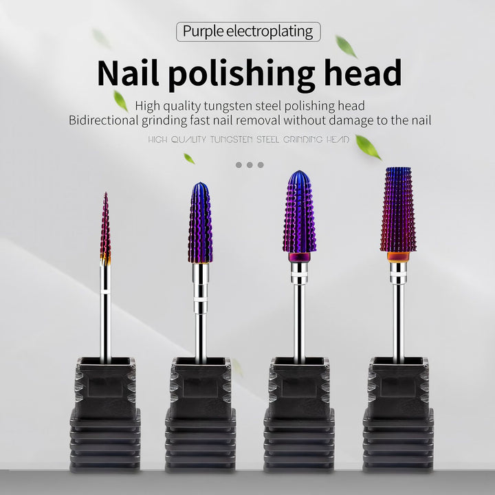 What sets our nail drill bit apart from others on the market is its superior build and performance. The tungsten steel material ensures that the bit remains sharp and effective over many uses, providing you with a reliable tool for all your manicure needs. Additionally, its high concentricity means you'll experience less vibration and smoother results, making it a joy to use. The purple plating adds a touch of elegance, making your manicure routine feel even more luxurious. With the option to purchase either a single polishing head or a set of four, you can choose the package that best suits your needs.Get Started on Your Perfect Manicure Today!
