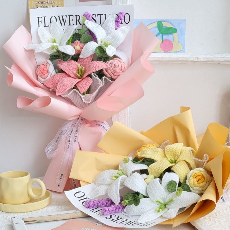 Homemade By Hand Bridal Bouquet Crocheted Hand-woven Suit