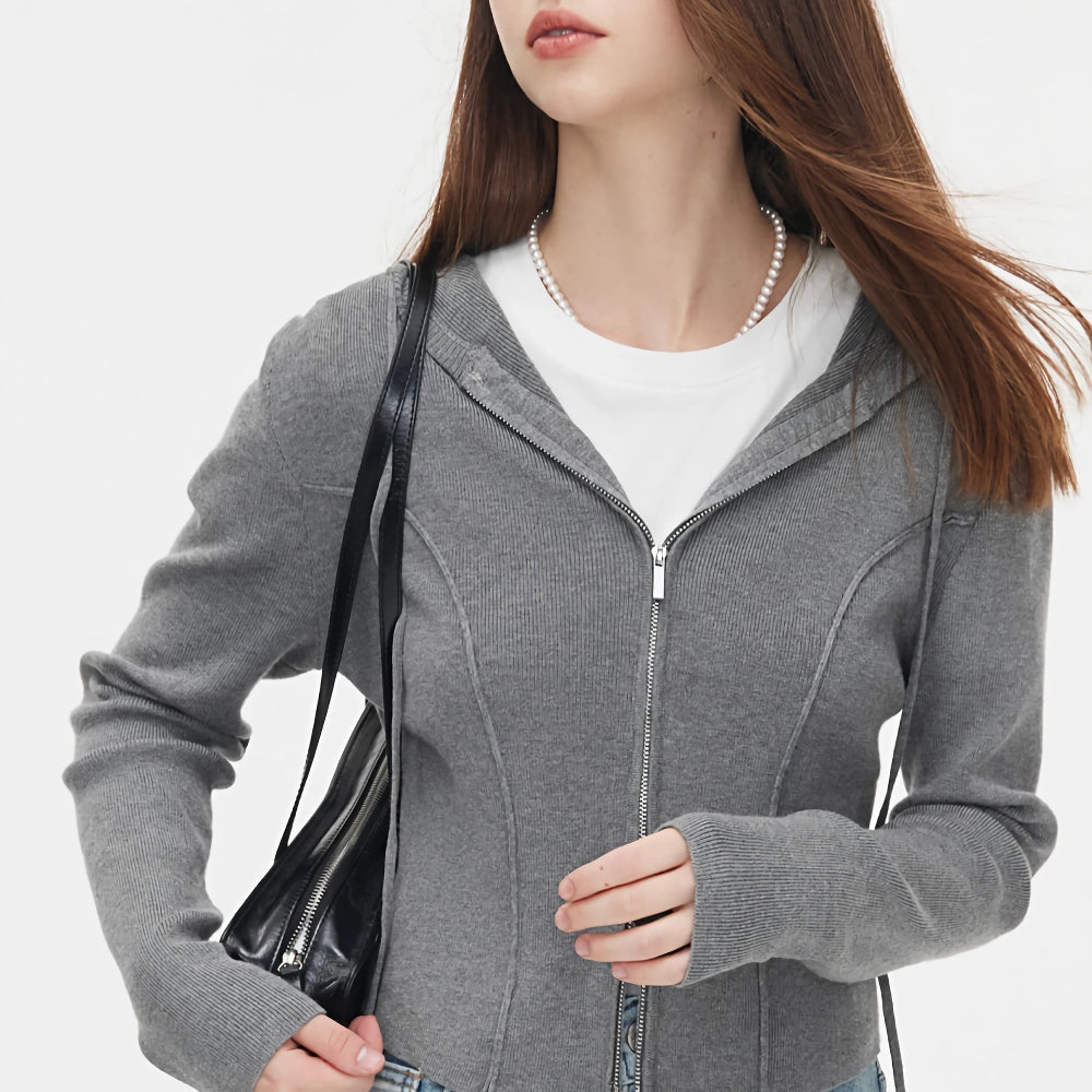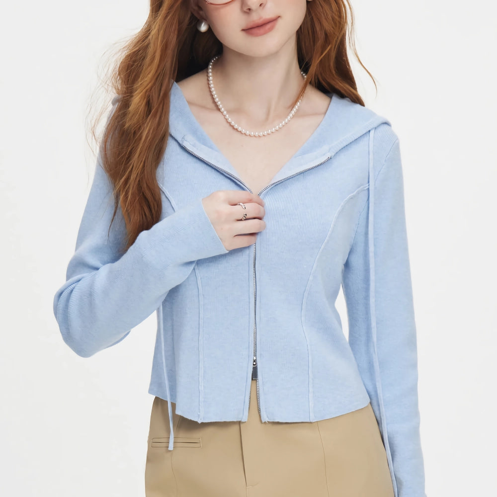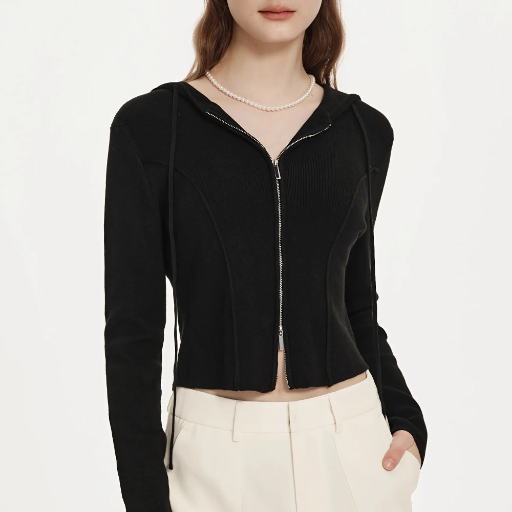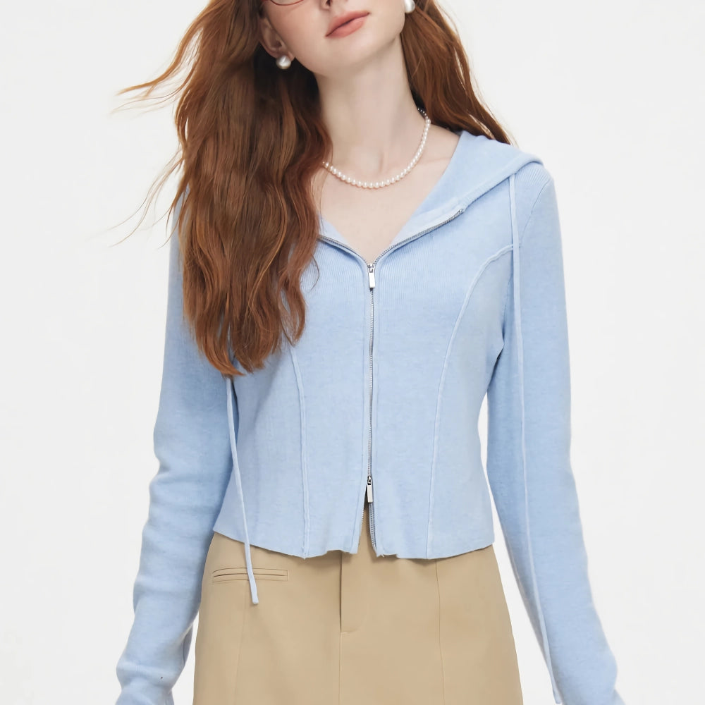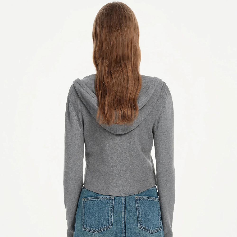 Step into comfort and style with our Hooded Cardigan Solid Sweatshirt. This versatile casual top is designed to keep you looking chic and feeling cozy throughout the spring and autumn seasons. Made with a blend of wool, viscose, and polyamide, this high-waist short cardigan features a classic herringbone knit that adds a touch of sophistication to any outfit. Whether you're heading to a casual brunch or a cozy evening walk, this hoodie is your go-to choice for effortless elegance.