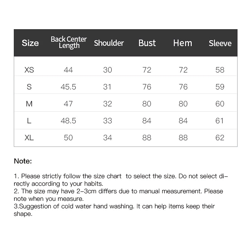 Tops Size Chart (cm)