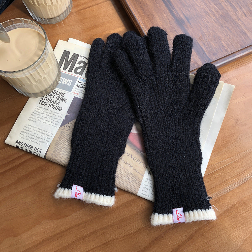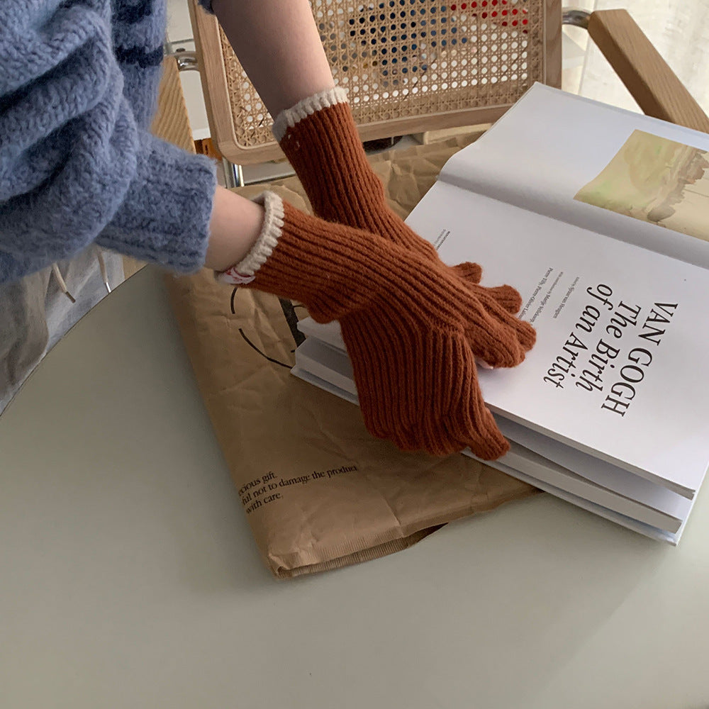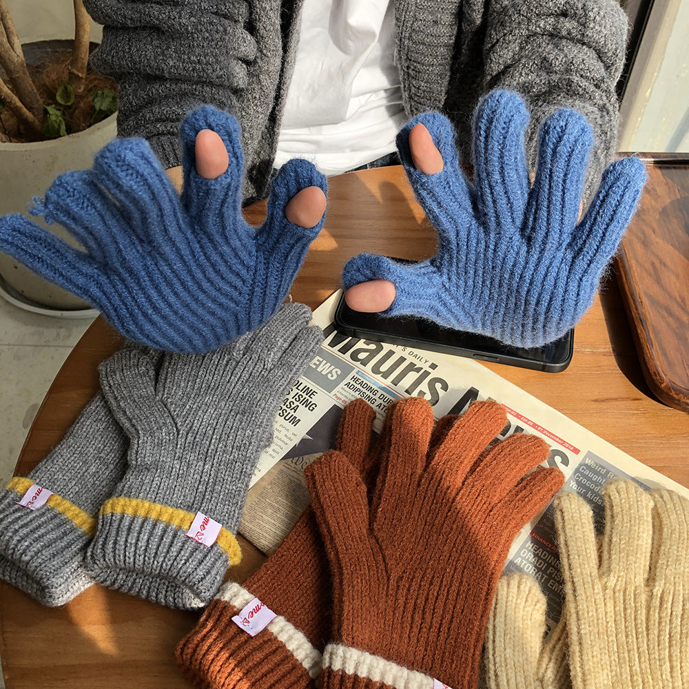 Knitted Contrast Color Wool Five-finger Gloves
